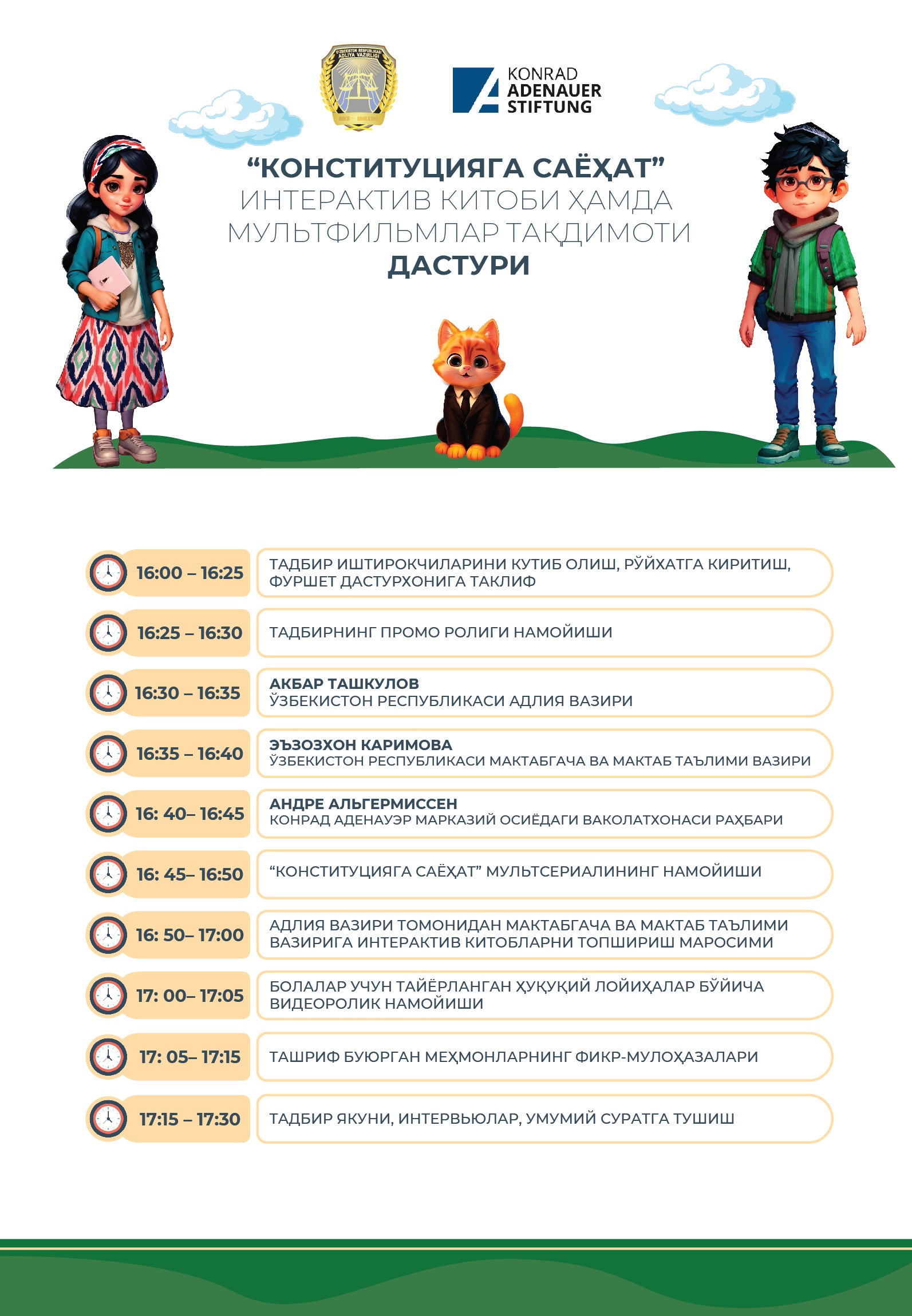 Ушбу тадбирда меҳмонларни бир дамга болаликка қайтиш ва Конституция оламига ажойиб саргузаштли саёҳат кутмоқда!
